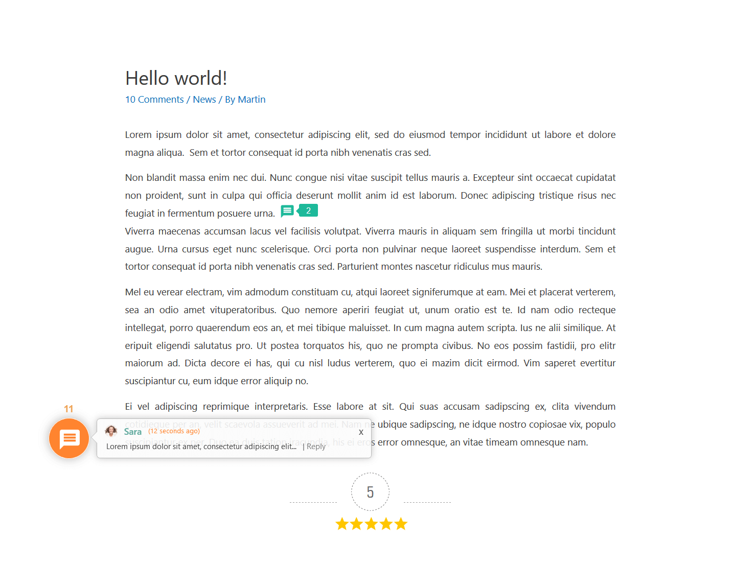 Once a question is added in article editor (backend), on article (front-end) readers will see a small comment icon next to the text part you’ve selected. This feature engages post readers inviting them comment and leave a feedback while reading without scrolling down and using the standard comment form.