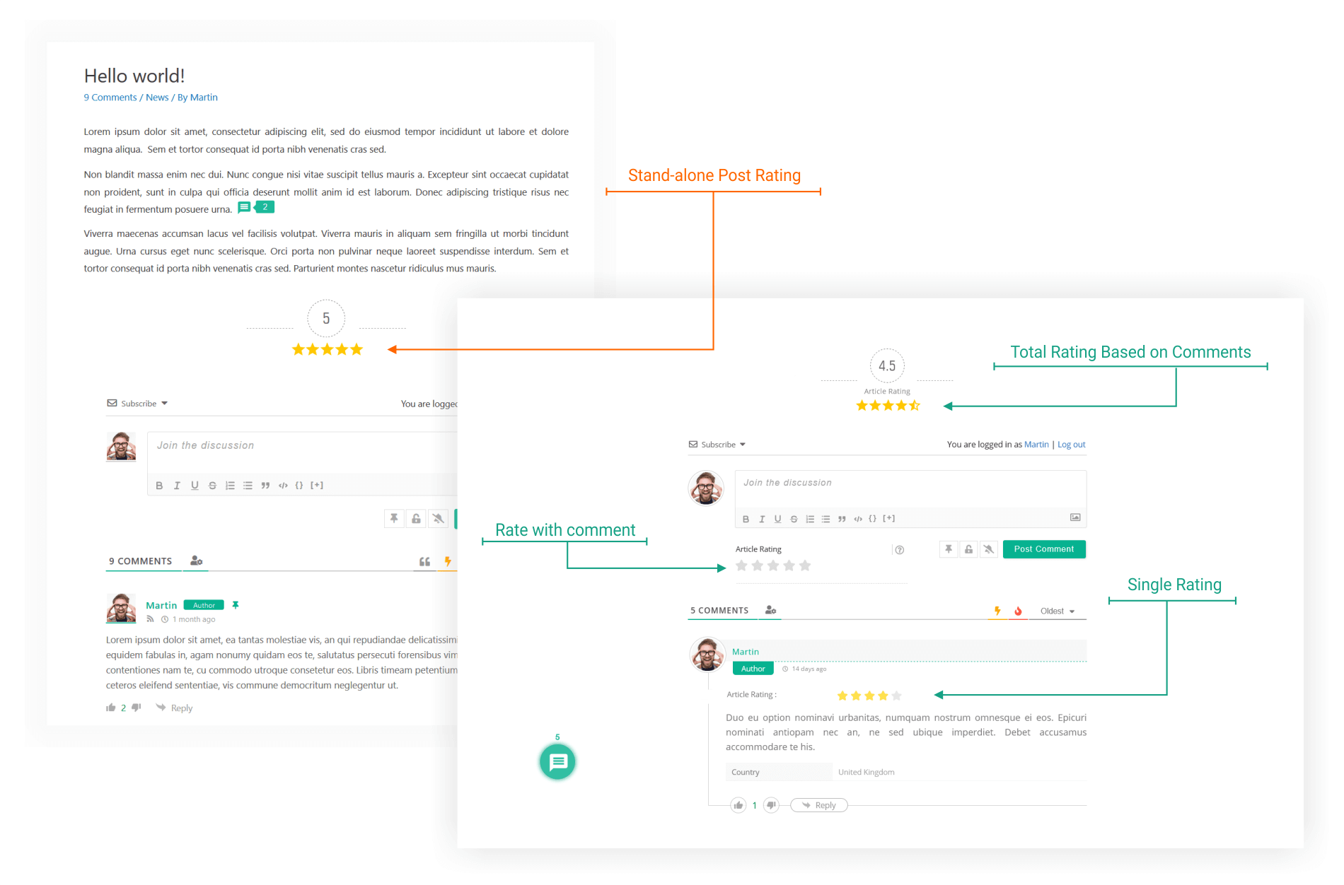Before, you had to create a Rating field in comment form to allow users rate articles while they comment. There was no way to rate without commenting. Now users can rate articles without leaving comments. wpDiscuz 7 comes with stand-alone Post Rating system located under the article content.