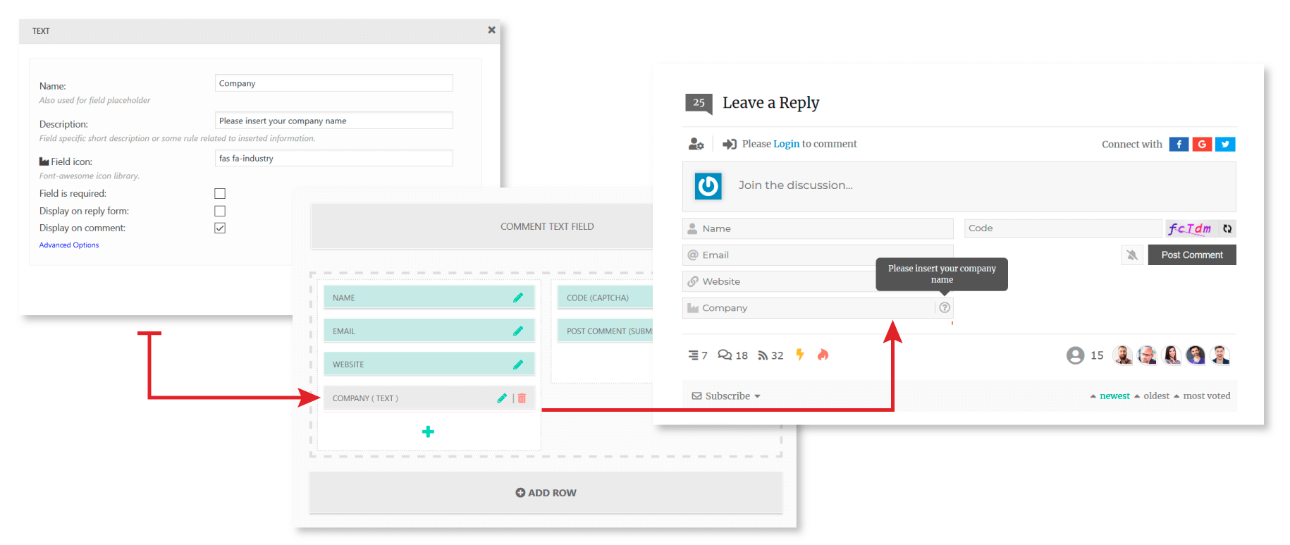 For developers, there is an advanced option to manage custom comment field key. This key is used to get submitted data and save in database (wp_commentmeta table).