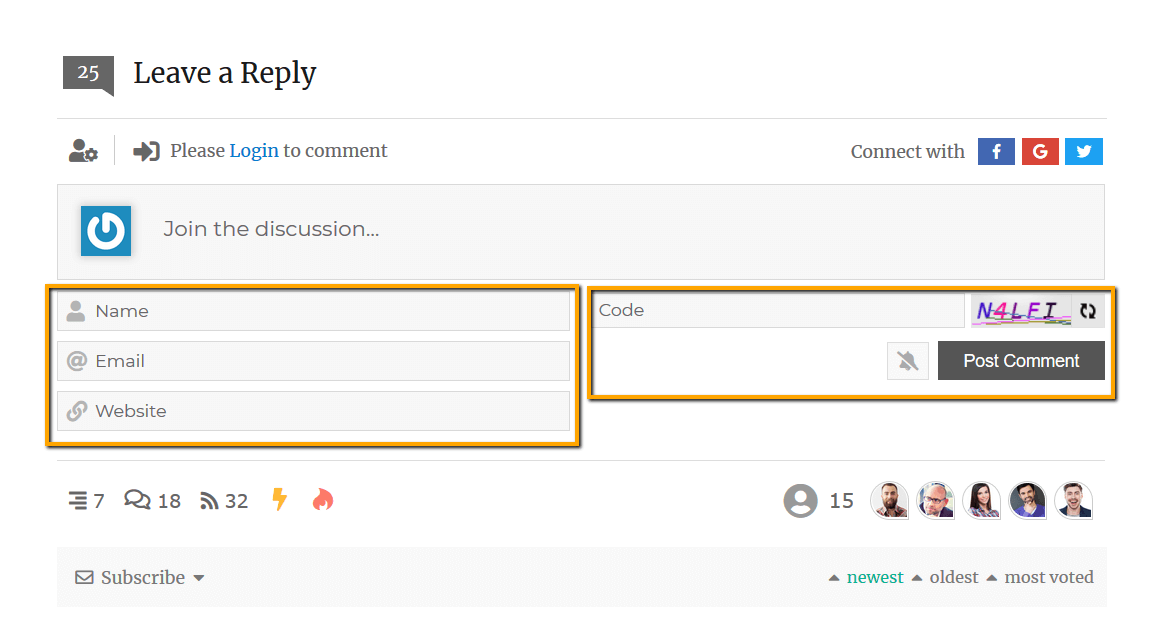 Tip: You cannot delete the default fields (name, email, website, captcha, submit). The Name and Email fields can be set not-required using according option. The Website and CAPTCHA field can be hidden by unchecking the “Enable” and “Show for guests” options accordingly.
