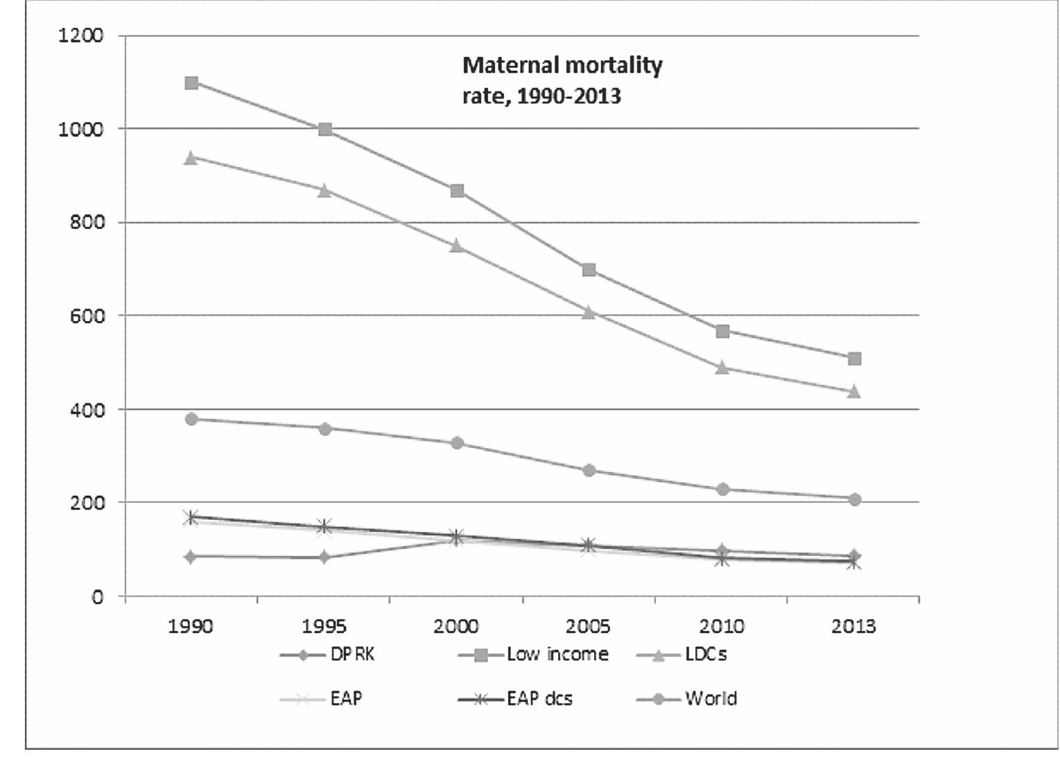 - World Health Organization, "Democratic People's Republic of Korea WHO Statistical Profile," http://www.who.int/gho/countries/prk.pdf?ua=1, accessed August 9, 2015.