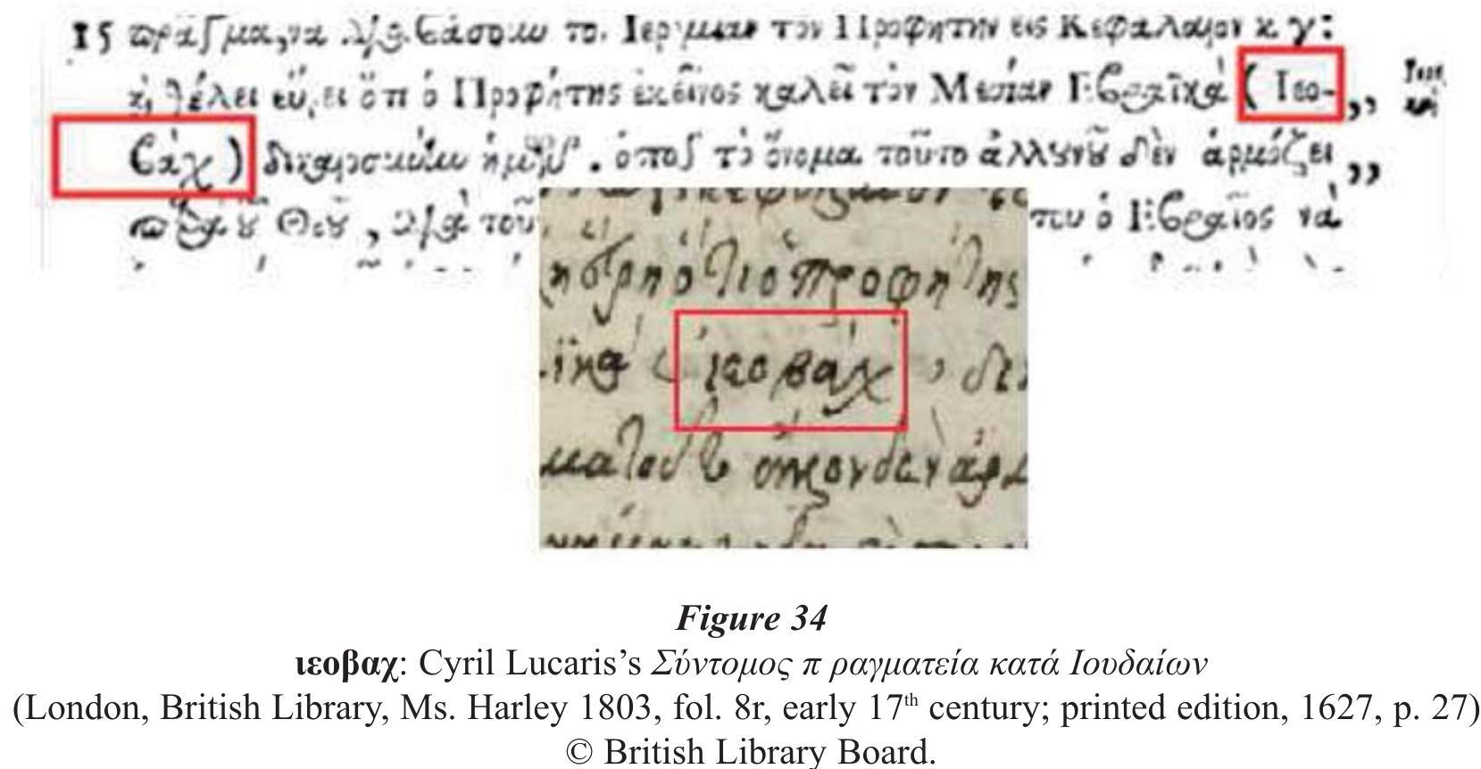 - Michael CHRONZ, Abt Nektarios Casole (Nikolaos aus Otranto), disputation gegen die Juden : ktitische ausgabe, PhD dissertation ; National and Kapodistrian University of Athens 2008, p. 65 (Gr.). Although a minuscule manuscript, Chronz apparently recognized γεχαβα as a proper noun and capitalized the gamma (fol. 24r).