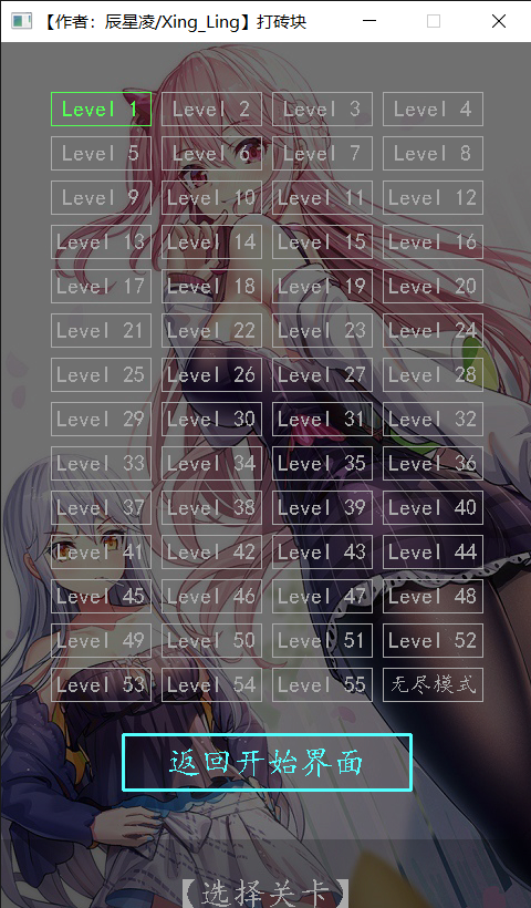 \(\text{update:}\) 添加关卡选项背景贴图;打砖块v1.0发布。