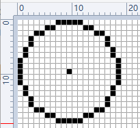 感觉半径为 \(9\) 的圆画出来大小比较合适,于是研究了一番 \(\text{EasyX}\) 库里的 \(\text{circle}\) 函数,发现其像素点排布如下(唉、我终于开始在意像素点的排布了):