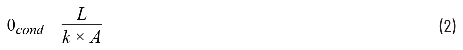 where L is the material length or thermal conduction distance (m), k is the material thermal conductivity [W/(m × K)], and A is the material cross-section area (m2).