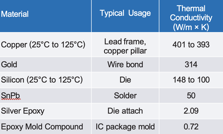 Table 2. Thermal Conductivity of Different Materials in ICs