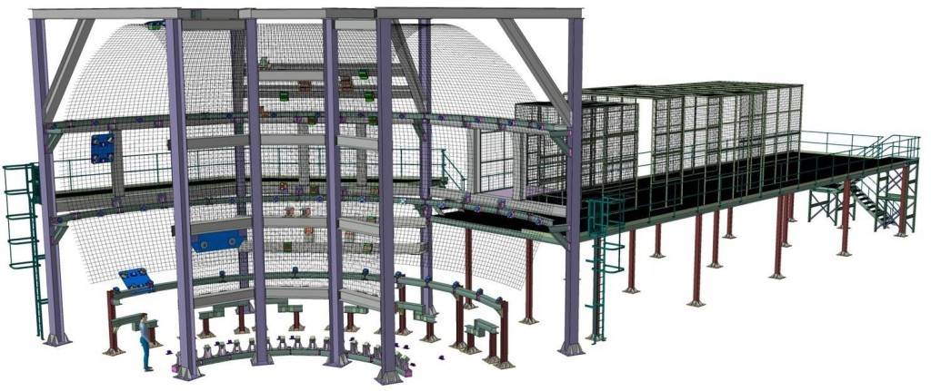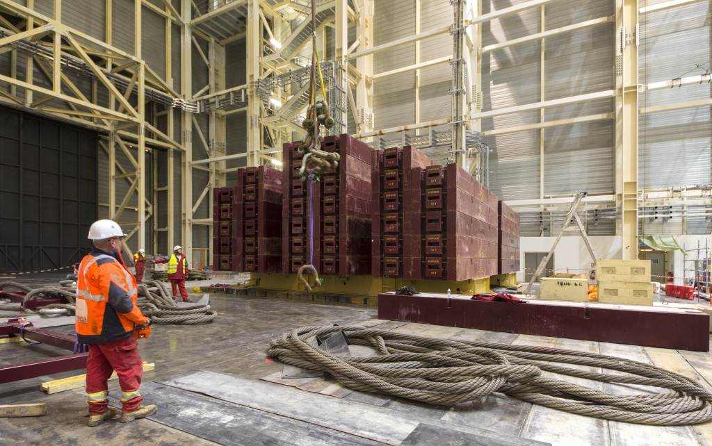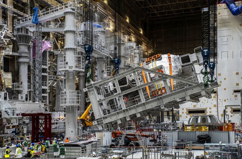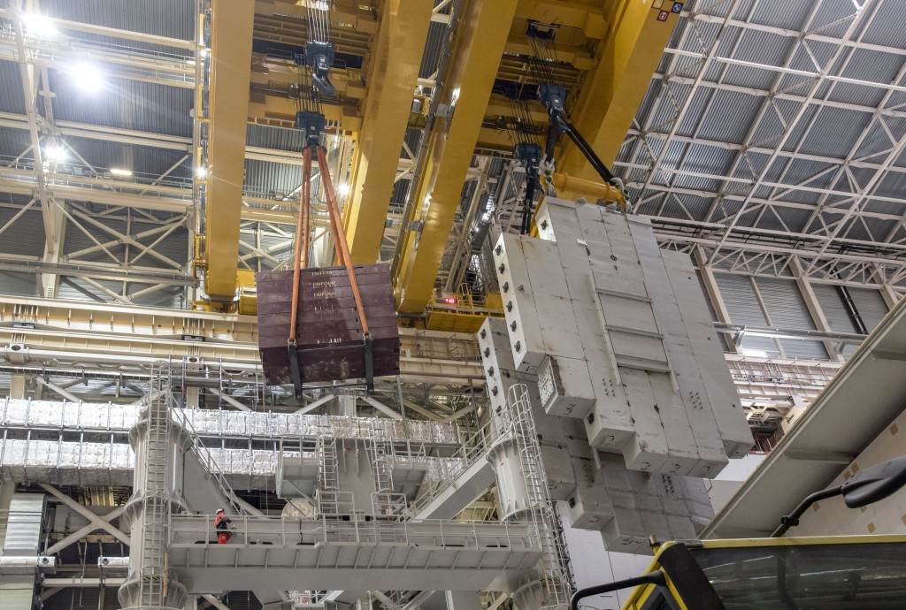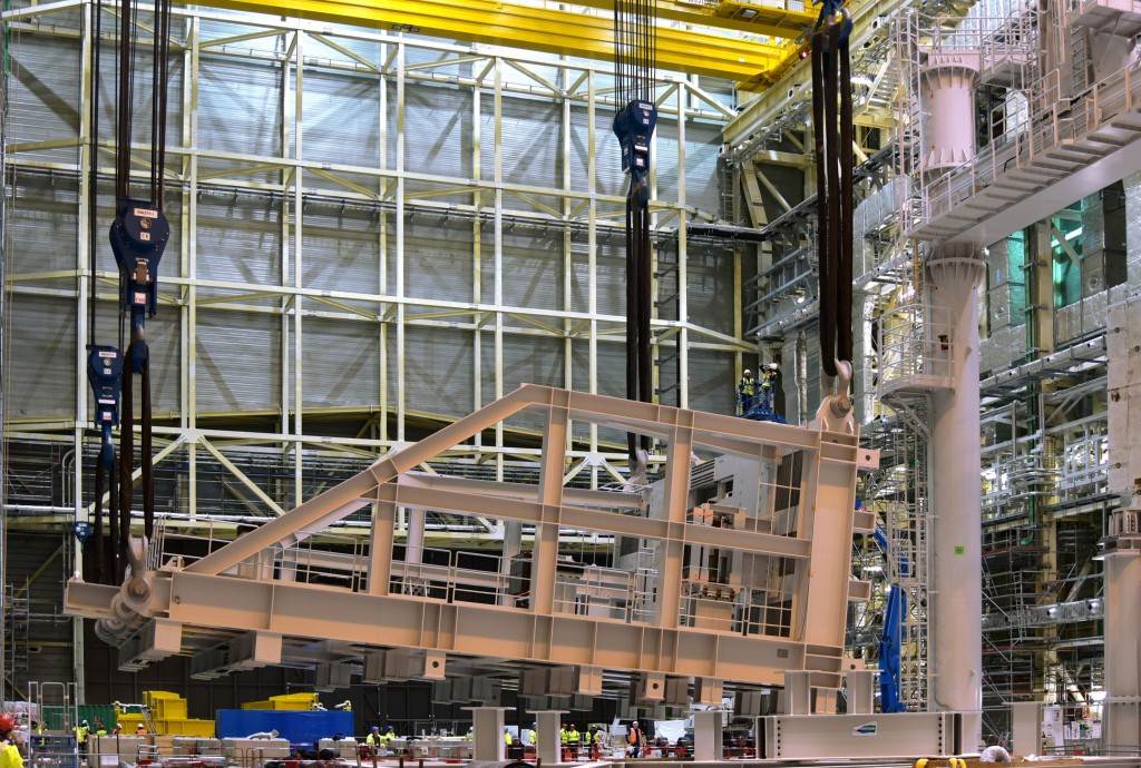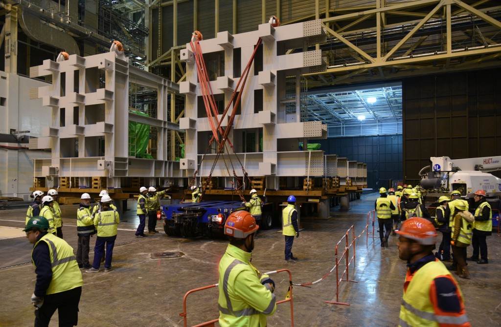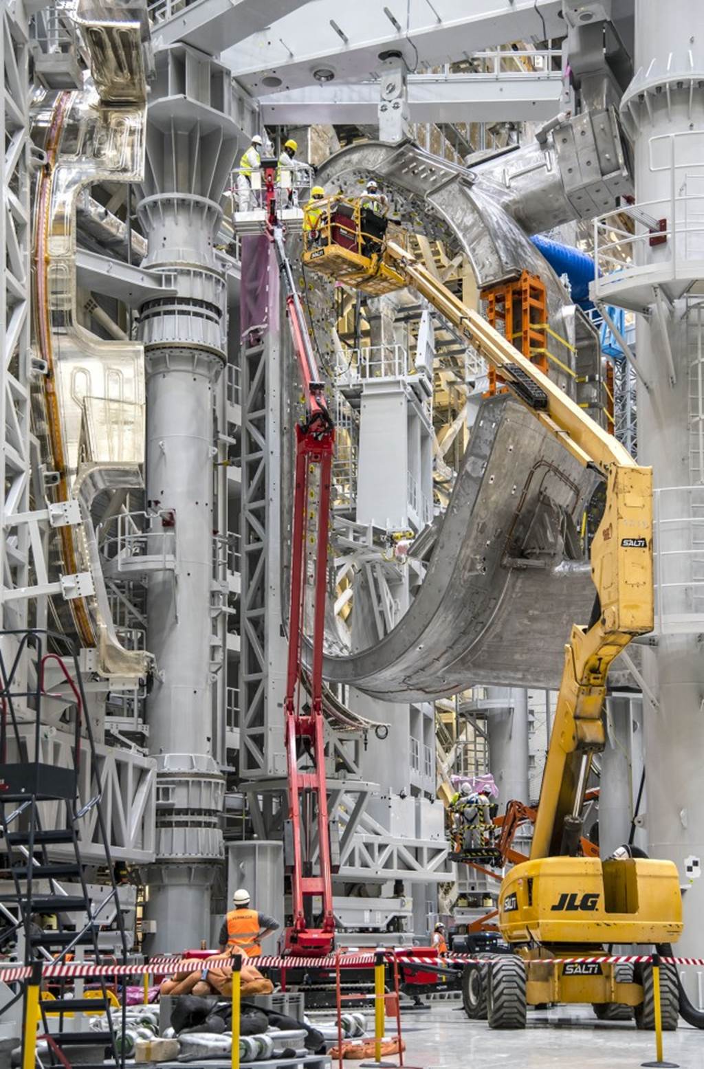 The tools have loading capacities that vary from 500 tonnes for the "upending" tool that turns vacuum vessel sectors from horizontal to vertical, to 1,500 tonnes for the heavy lift cranes overhead in the assembly theatre.