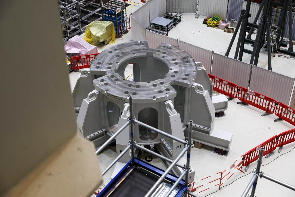 Purpose-built transportation and lifting tools have been designed for the installation of each cryostat section (base, lower cylinder, upper cylinder, top lid). Once installed, the sections are brought into alignment with the tokamak global coordinate system through hydraulic jacks. (Procured by the ITER Organization)
