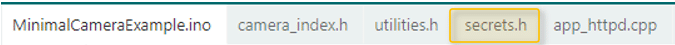If you now open the MinimalCameraExample.ino project in your Arduino IDE you should see a Tab with the “secrets.h” file.