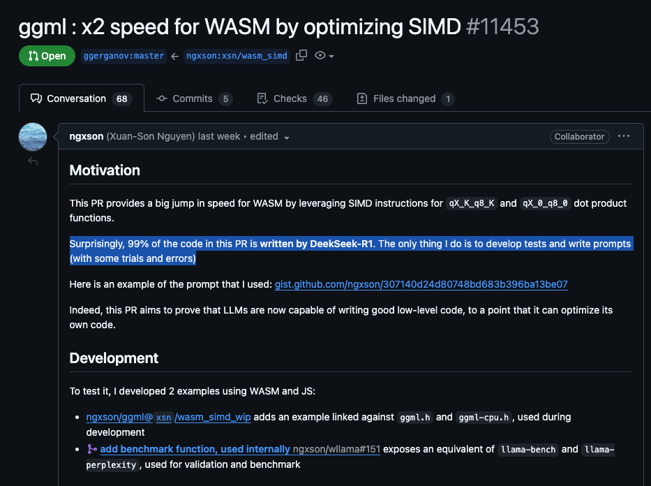 🌥️ And hey, software engineers have been keeping their own Doomsday clock which moved when Xuan-Son Nguyen raised a Pull Request on llama.cpp: “ggml : x2 speed for WASM by optimizing SIMD”, written mostly by DeepSeek-R1. (it’s joever?) Maybe it's time to reclaim your role.