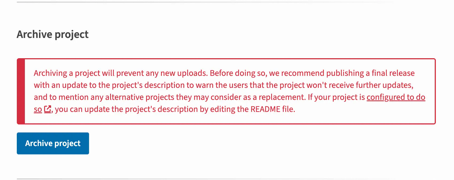 🗂️ PyPi adds support for archiving a package. This is aimed to be a way for maintainers to signal that they are not deleting the project from index, but don’t expect any new releases on this package and in turn decide carefully whether you do want to depend on this package.