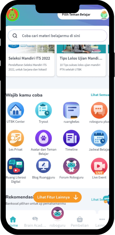 Pilih fitur “Roboguru Plus” di home aplikasi Ruangguru