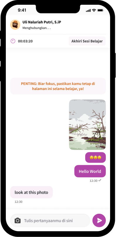 Kirim soal dan tulis pertanyaan, lalu kamu dapat terhubung dengan tutor melalui chat. Layanan ini tersedia untuk SD, SMP, dan SMA.