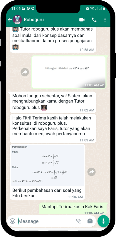 Yeay, kamu akan langsung terhubung dengan tutor Roboguru Plus . Selamat belajar, ya!