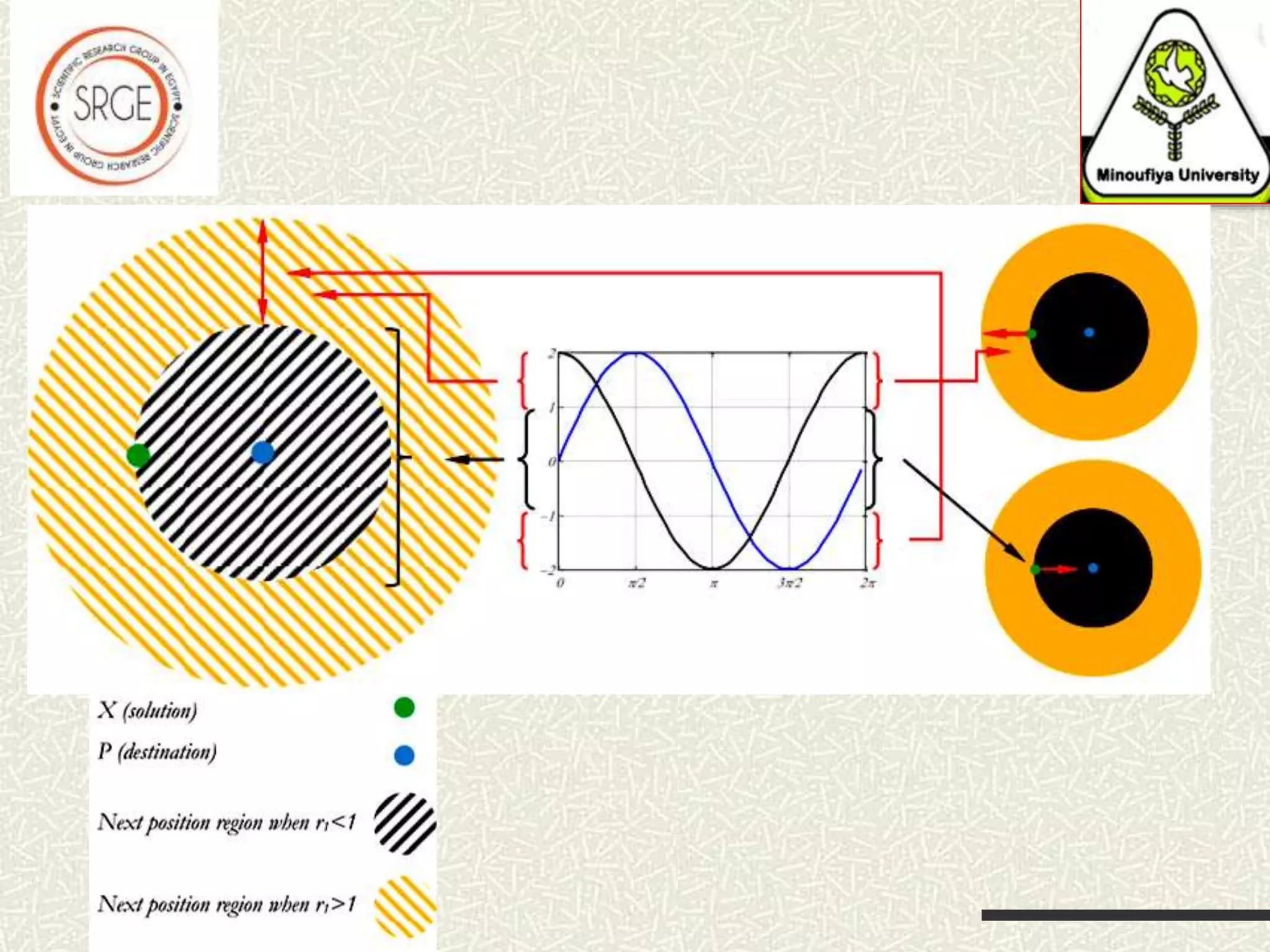 The document discusses a hybrid optimization algorithm, Sine Cosine Algorithm (SCA), introduced in 2016, which aims to address global optimization problems but may become trapped in local optima. It integrates a local search technique for improved exploration and exploitation, showing superior performance in escaping local minima. The results indicate that this hybrid approach can efficiently converge to global minima, with potential for future applications to more complex problems.