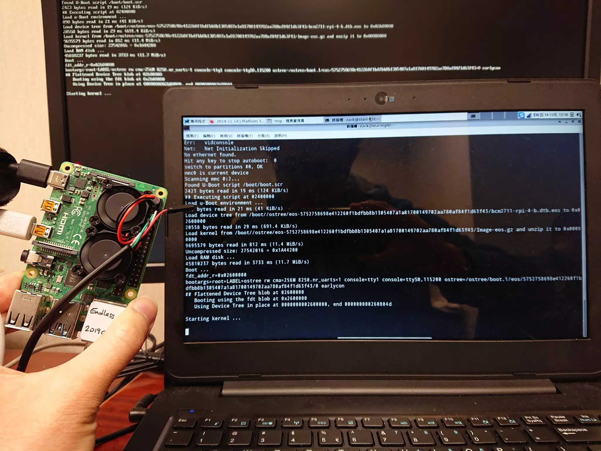 The document outlines the process of booting Endless OS on the Raspberry Pi, focusing on the use of OSTree for system deployment and updates. It discusses the history of Endless OS and its focus on self-learning, alongside technical details about device trees, U-boot bootloader, and the Raspberry Pi boot process. Key points include the transition to a 64-bit system and the methods for deploying device trees using OSTree.