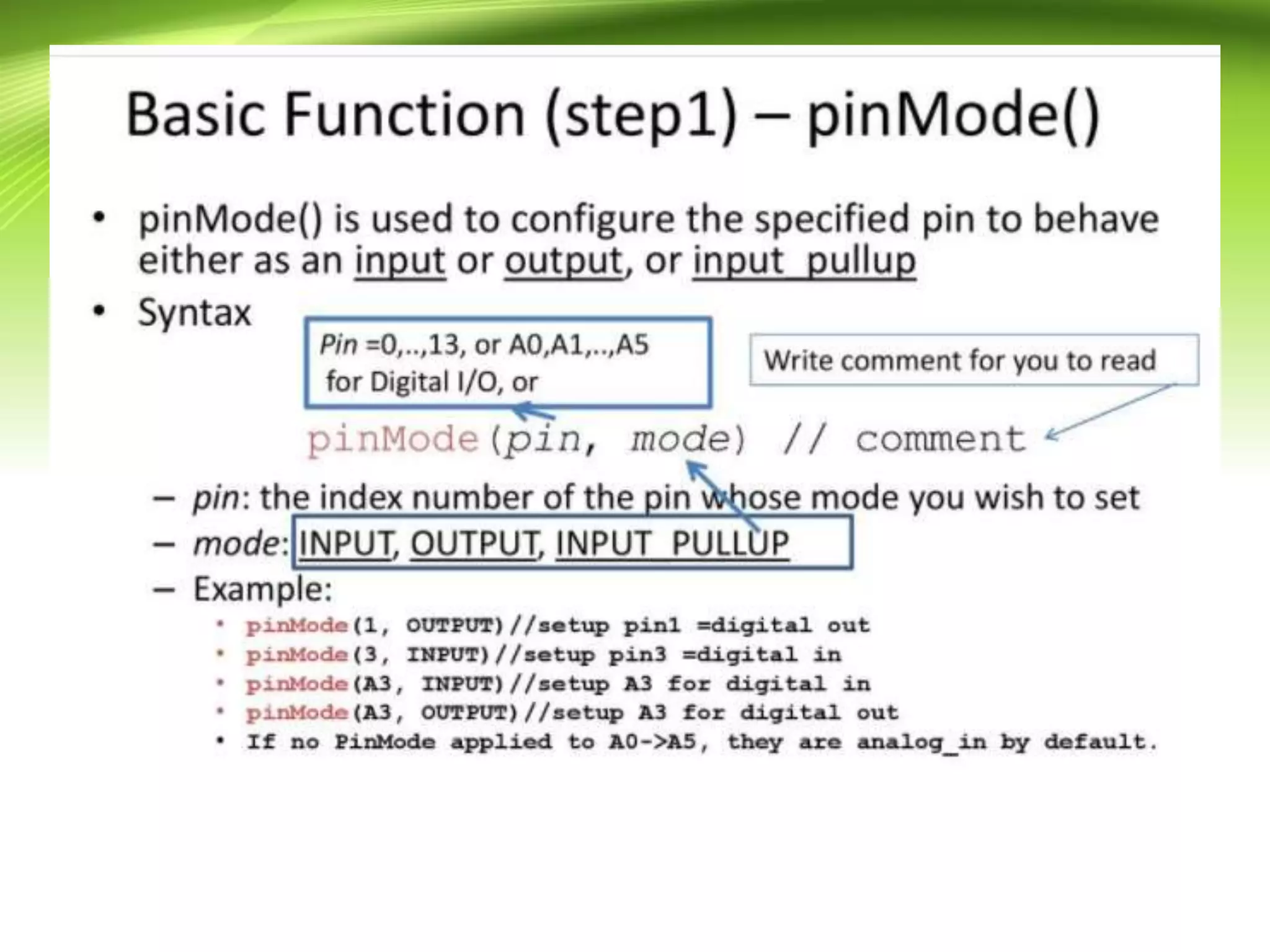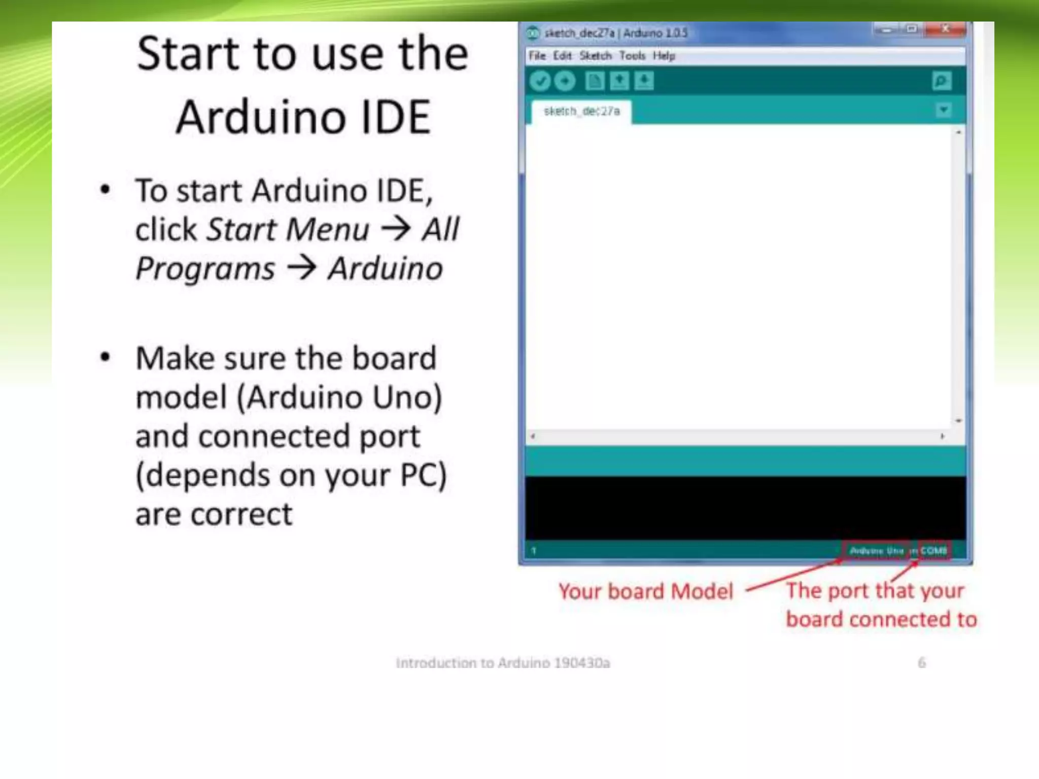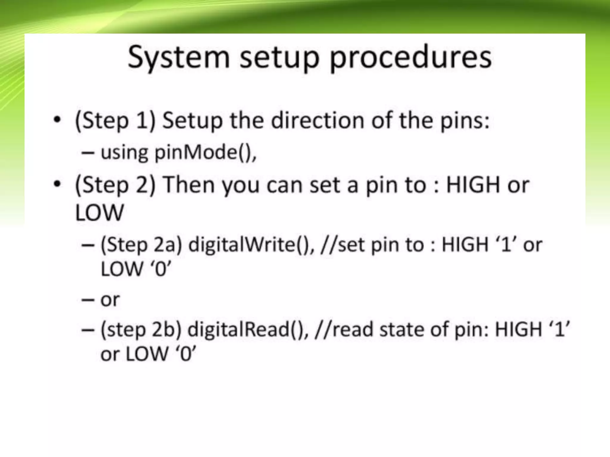 The document provides an overview of the Arduino programming language, which is based on the Wiring development platform. It explains the essential structure of Arduino programs, divided into three main parts: structure, values (variables and constants), and functions, focusing on the setup() and loop() functions. The tutorial aims to guide readers in writing Arduino programs without syntax or compilation errors.