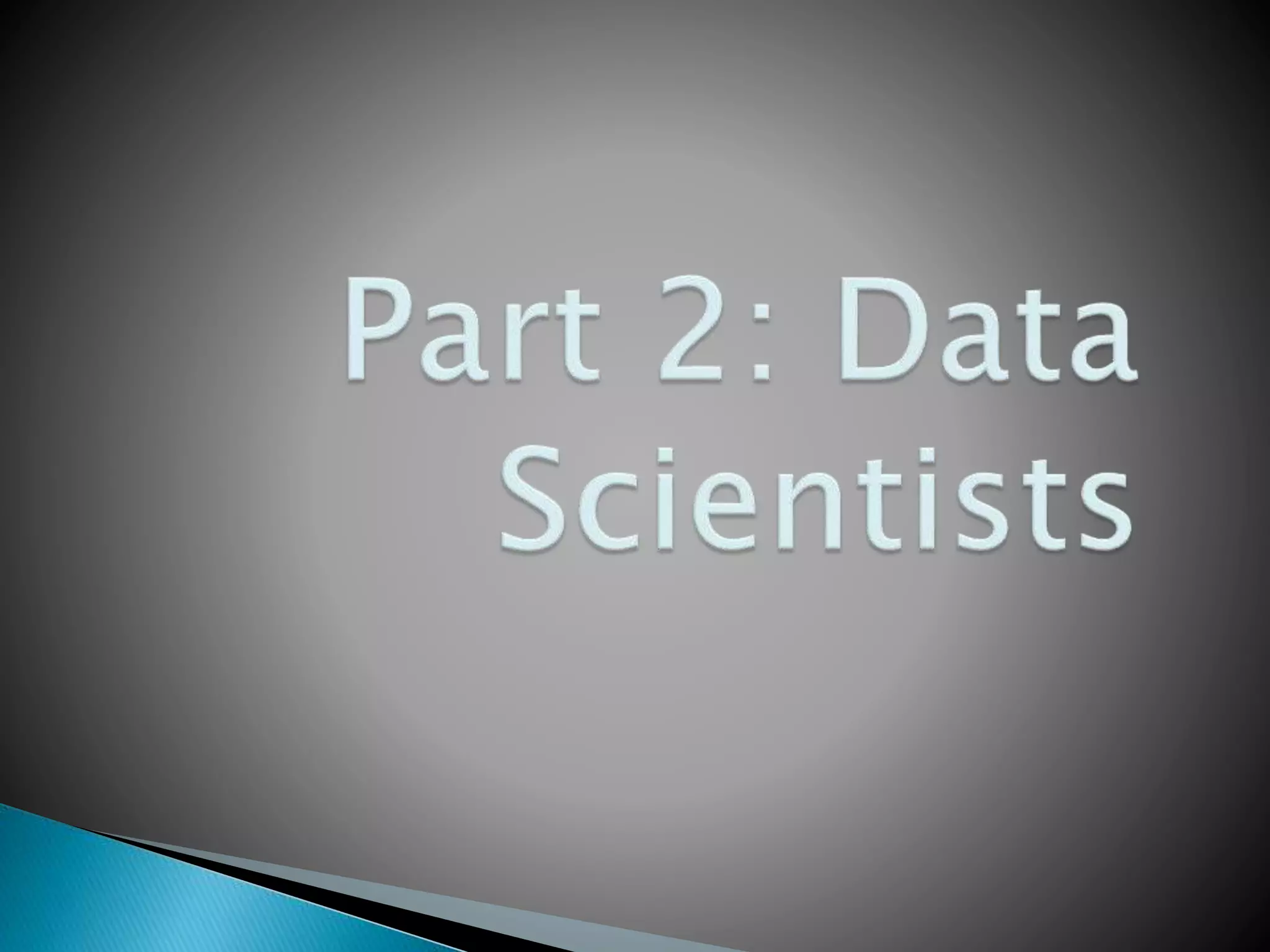Mathematical/Statistical Background ◦Graduate degree, typically in mathematics/statistics, computer science, or engineering ◦ Training in machine learning and algorithm design ◦ Experience with R and SAS statistical languages/programs Computer Science Background ◦ Python/MATLAB/other high-level computing languages ◦ Hadoop/MapReduce concepts ◦ SQL or NoSQL coding for database extraction/management ◦ Experience with structured or unstructured data ◦ Data mining/algorithm design Field of Application Expertise ◦ Intellectual curiosity ◦ Understanding of the industry of application (marketing, medical, finance…) ◦ Communication skills to relate findings to non-technical leaders