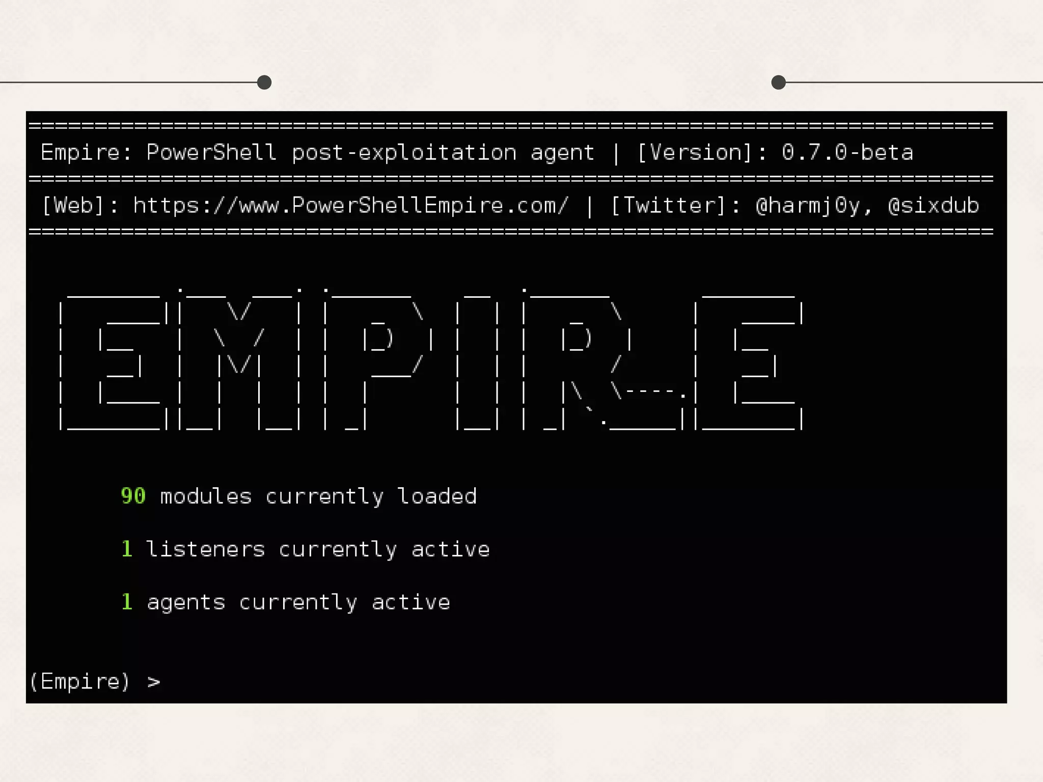 tl;dr ○ Red TeamPhilosophy ○ (Offensive) PowerShell ○ RATs 101 ○ Empire ○ Modules ○ Demo ○ Taking Down the Empire ○ The Future