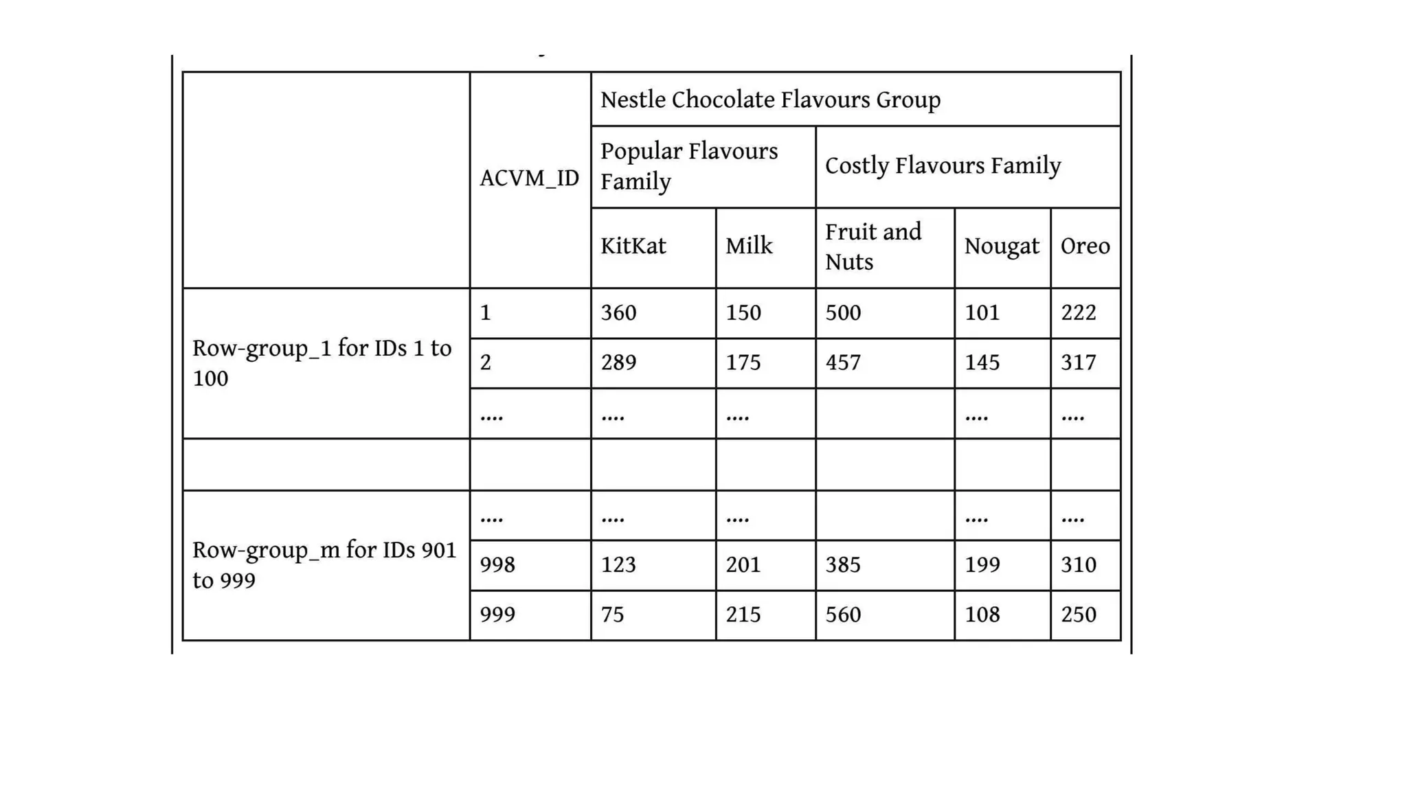 For example ifthere is a record which comprises of ID, emp Name and Department then all the values for ID column will be stored together, values for Name column together and so on. If we take the same record schema as mentioned above having three fields ID (int), NAME (varchar) and Department (varchar)