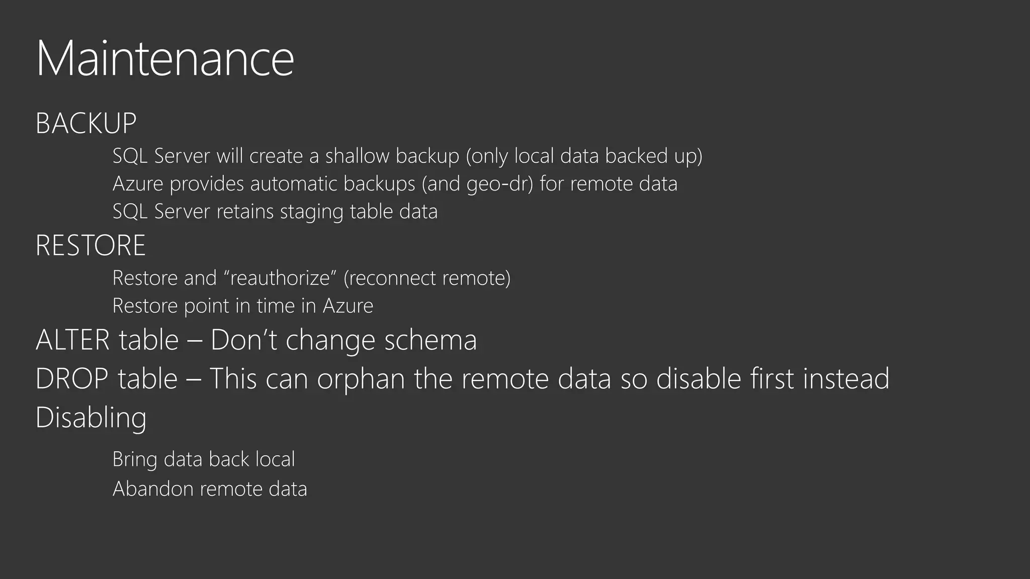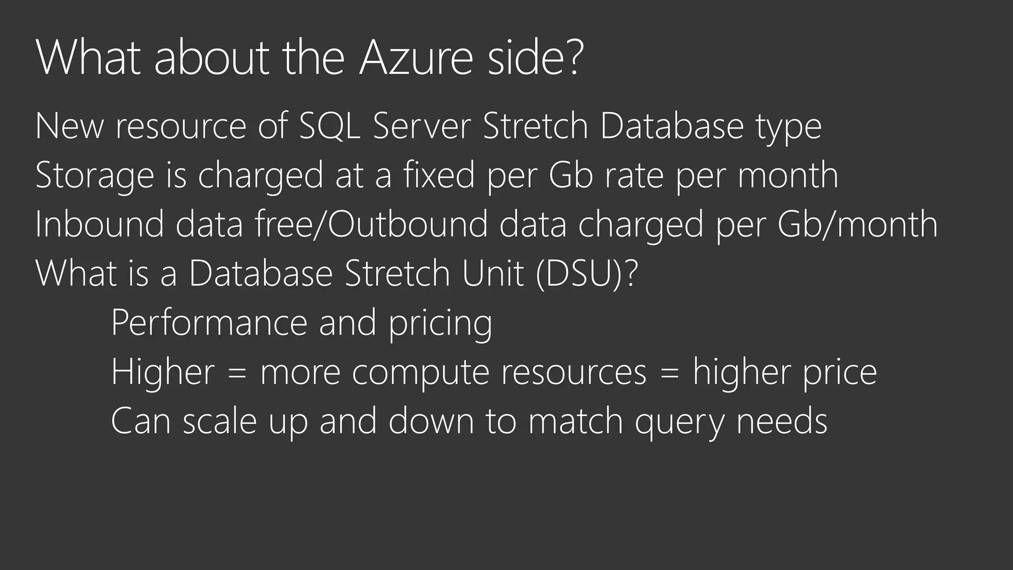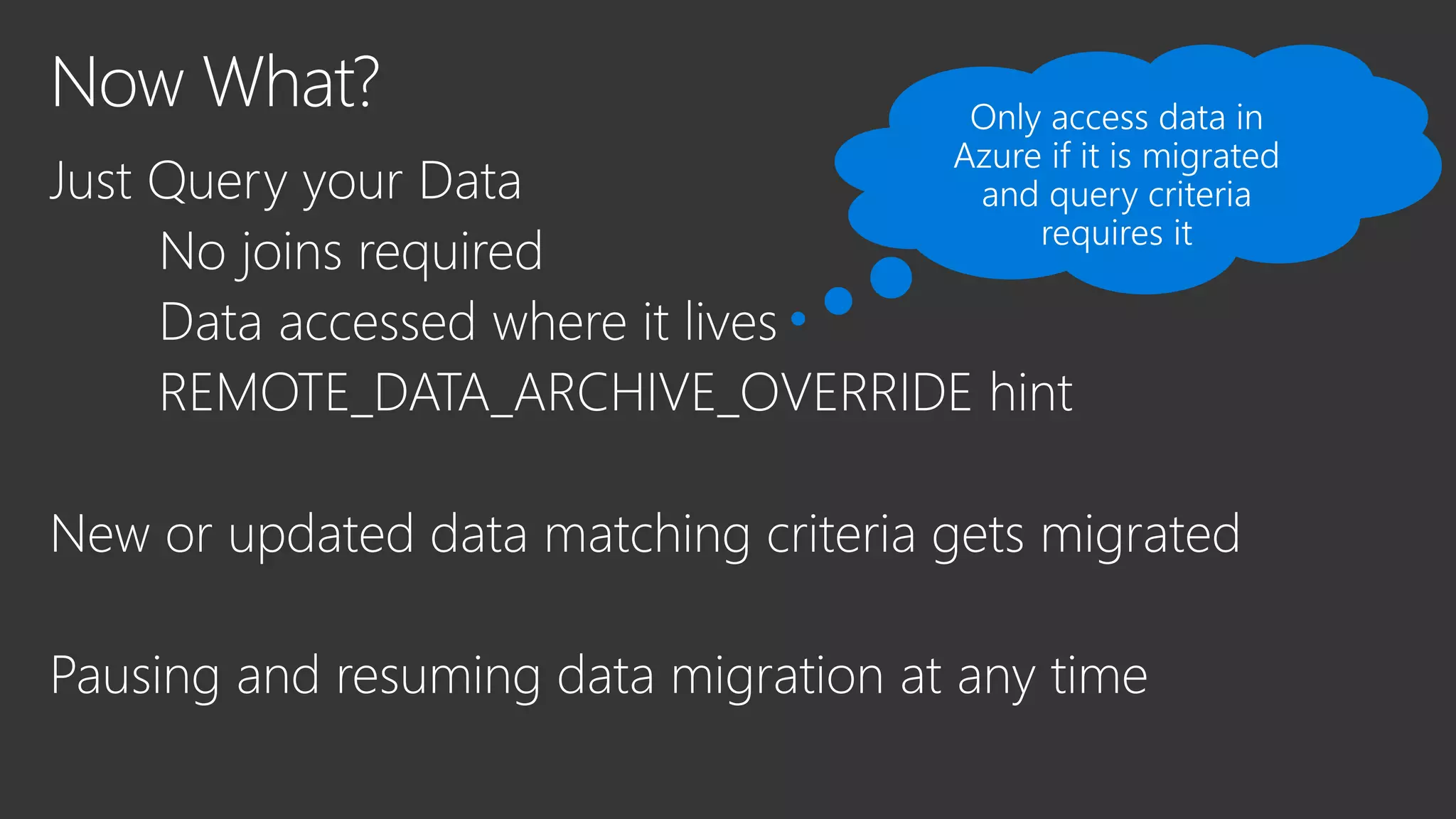 This document discusses Microsoft's SQL Server and its capabilities for developing and deploying across on-premises and cloud environments with a single consistent data platform. It highlights tools for backup, availability, encryption, and querying external storage in Microsoft Azure. SQL Server Stretch Database is described as a hybrid solution that securely migrates cold data to Azure while allowing remote query processing with applications continuing to use the on-premises database. The Database Migration Assistant is also mentioned as a tool.