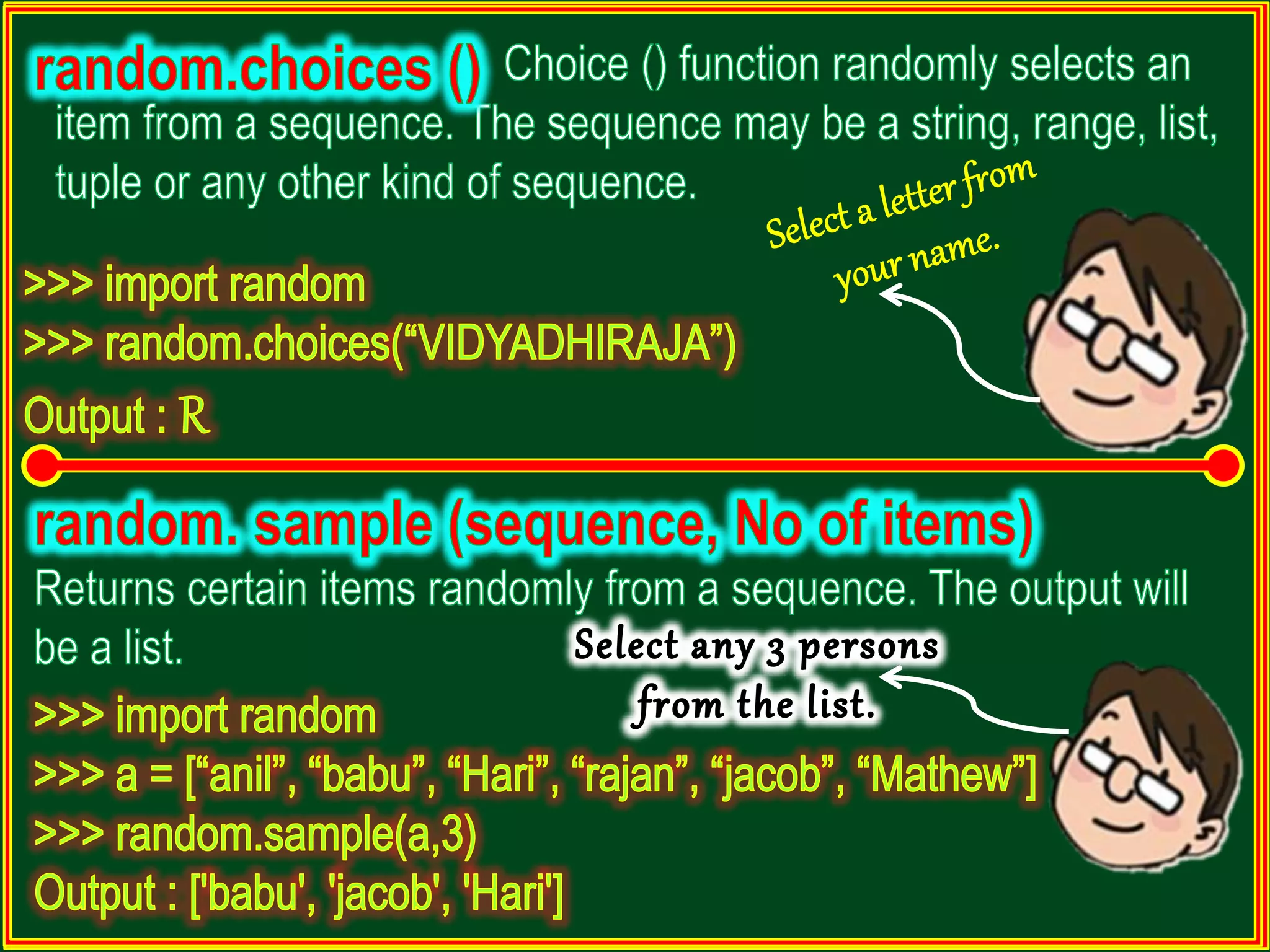 >>> x ="Mathew,Krishna,David,Ram" >>> x.split( “,” ) We get the list ['Mathew', 'Krishna', 'David', 'Ram'] Cut when you see “n“. >>> x = "MathewnKrishnanDavidnRam" >>> x.split( “n” ) We get the list ['Mathew', 'Krishna', 'David', 'Ram'] >>> x = "MAVELIKARA" >>> x.split("A") We get the list ['M', 'VELIK', 'R', ''] "MAVELIKARA" Is it Fun?
