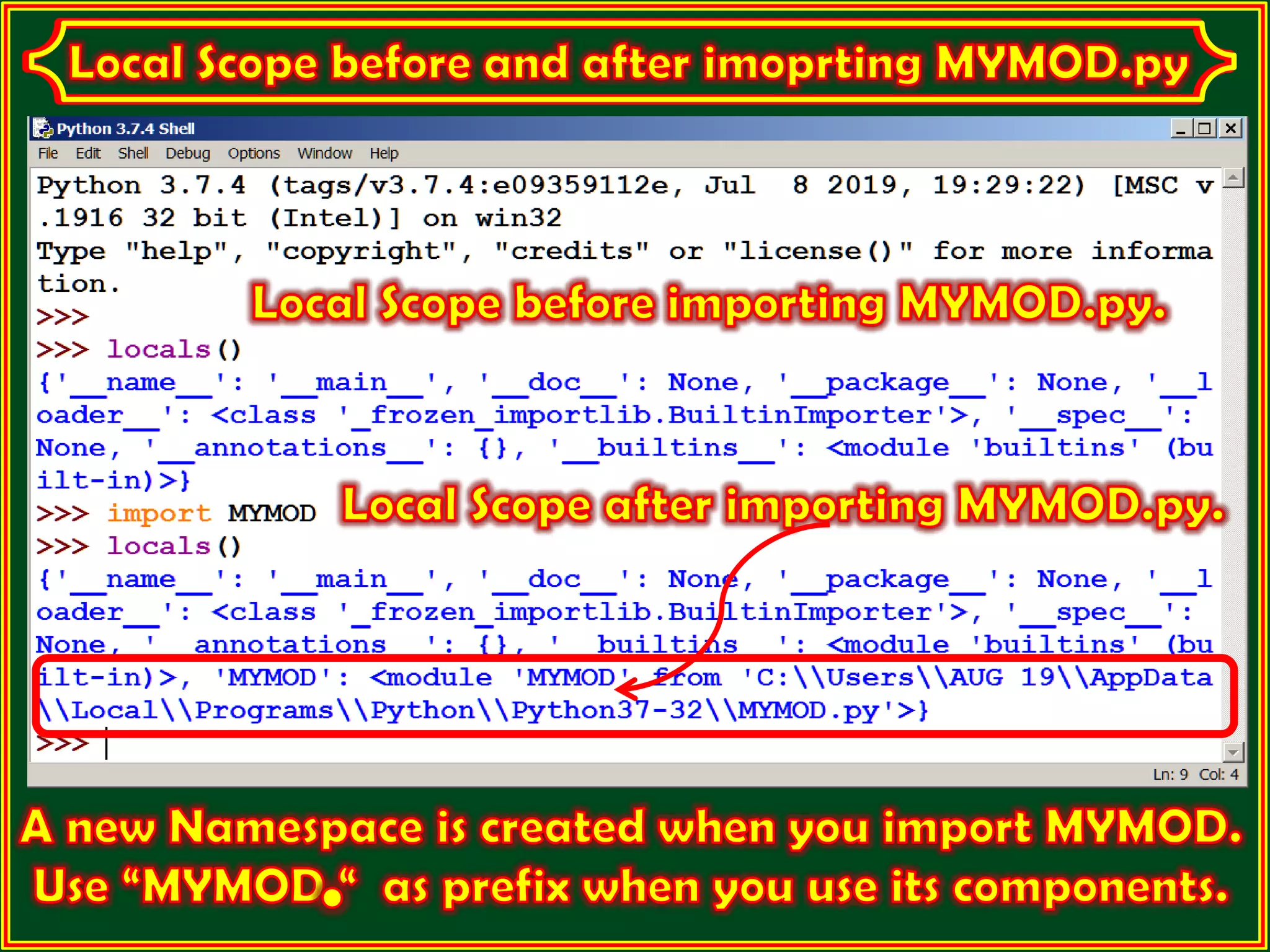 I opened anotherprogram file and imported MYMOD (.py). The functions written in the module are working well. Example