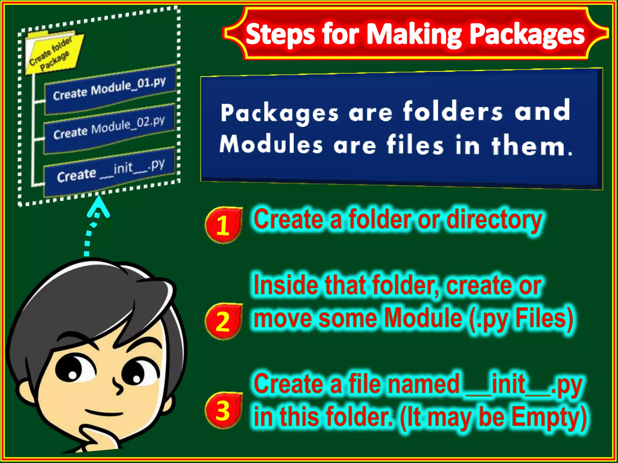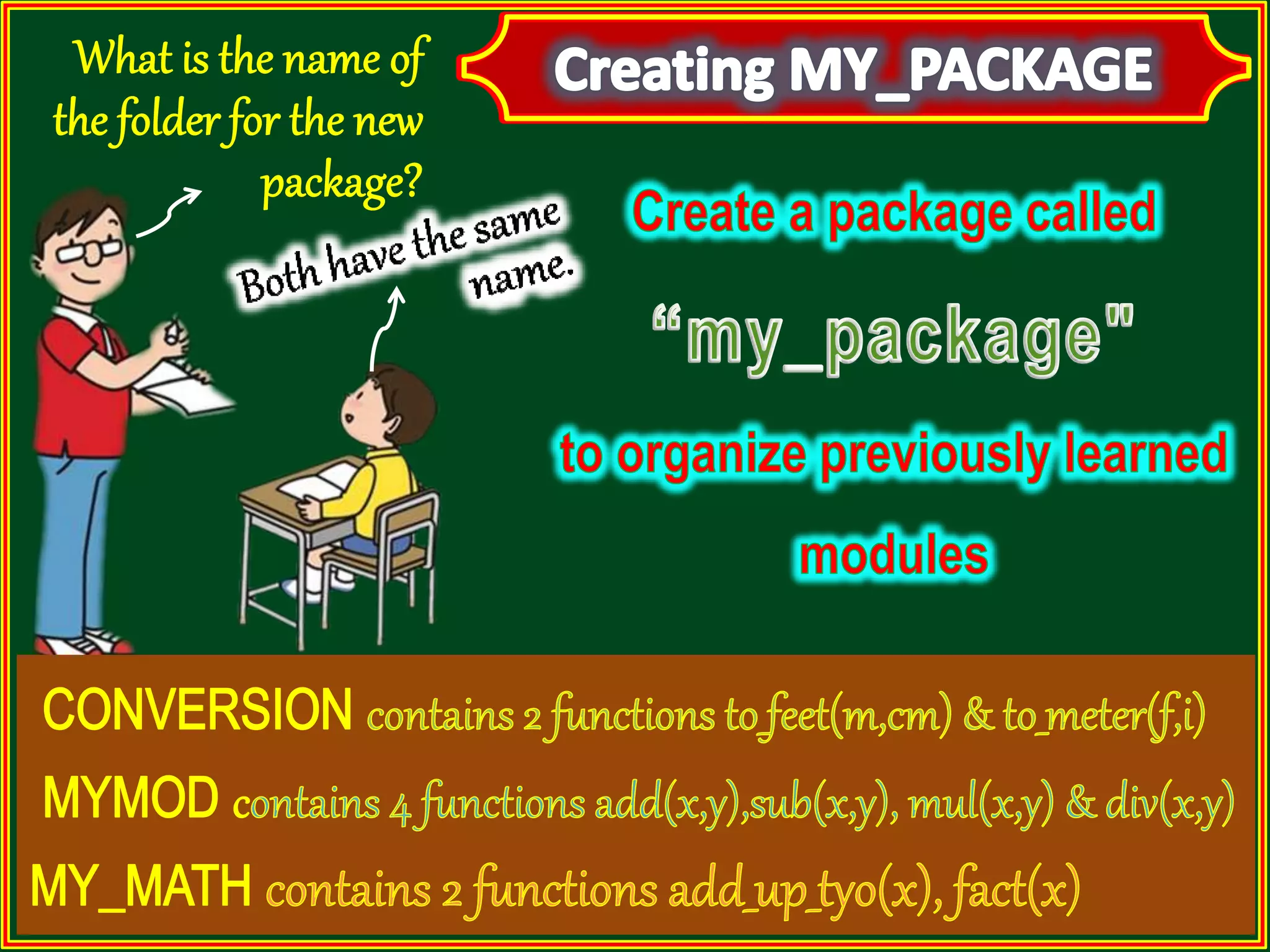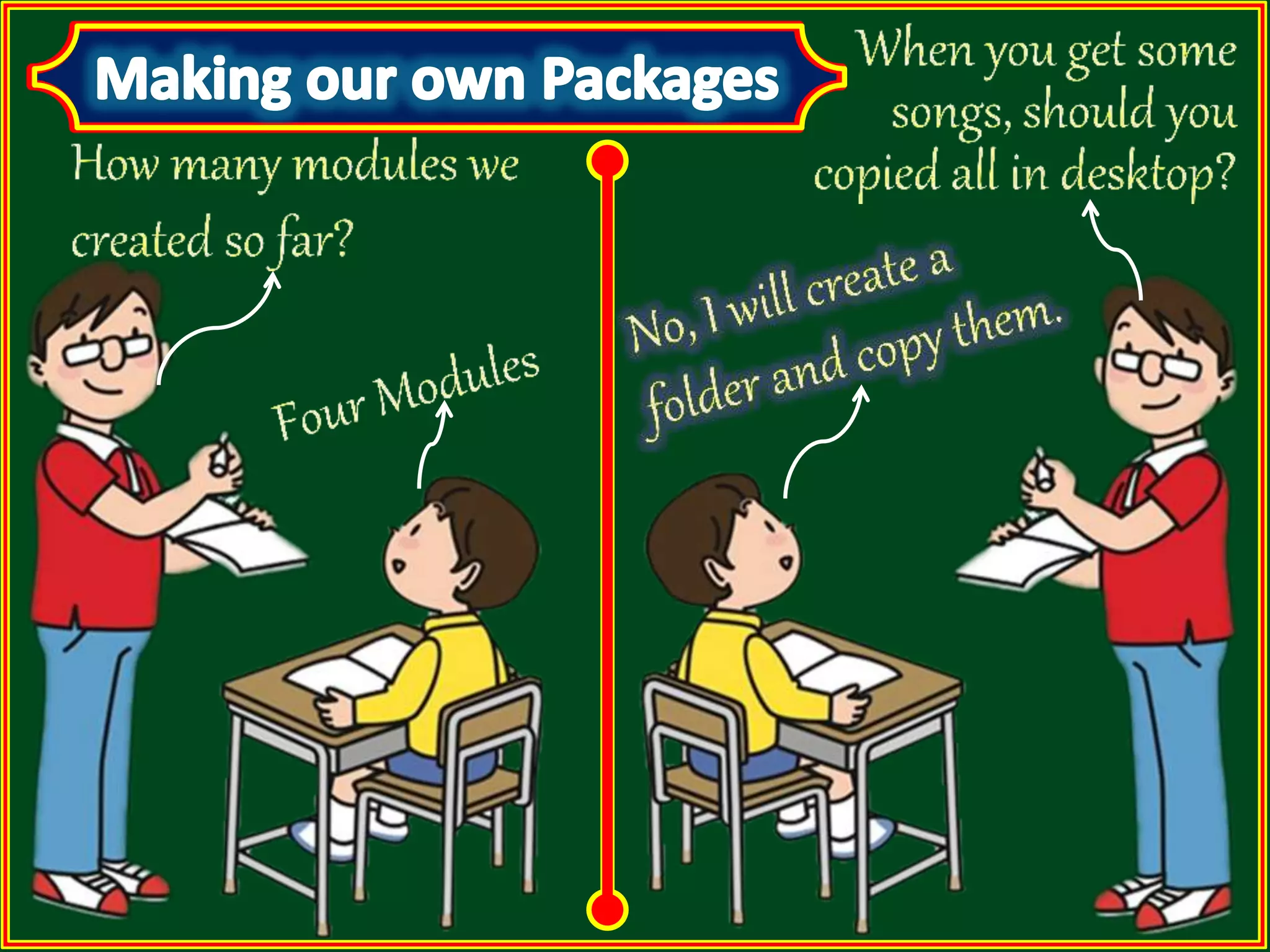 A group ofmodules saved in a folder is called package. I want a package contains my own modules. Collection of modules saved in a folder, are called package.