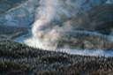 move up - move upward; "The fog lifted"; "The smoke arose from the forest fire"; "The mist uprose from the meadows"