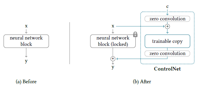However, this will not be the case in further training rounds when the zero convolution layer weights are updated to become non-zero. The capability, functionality, and result quality of any neural network block is perfectly preserved and any further optimization will become as fast as fine-tuning in comparison to training those layers from scratch.