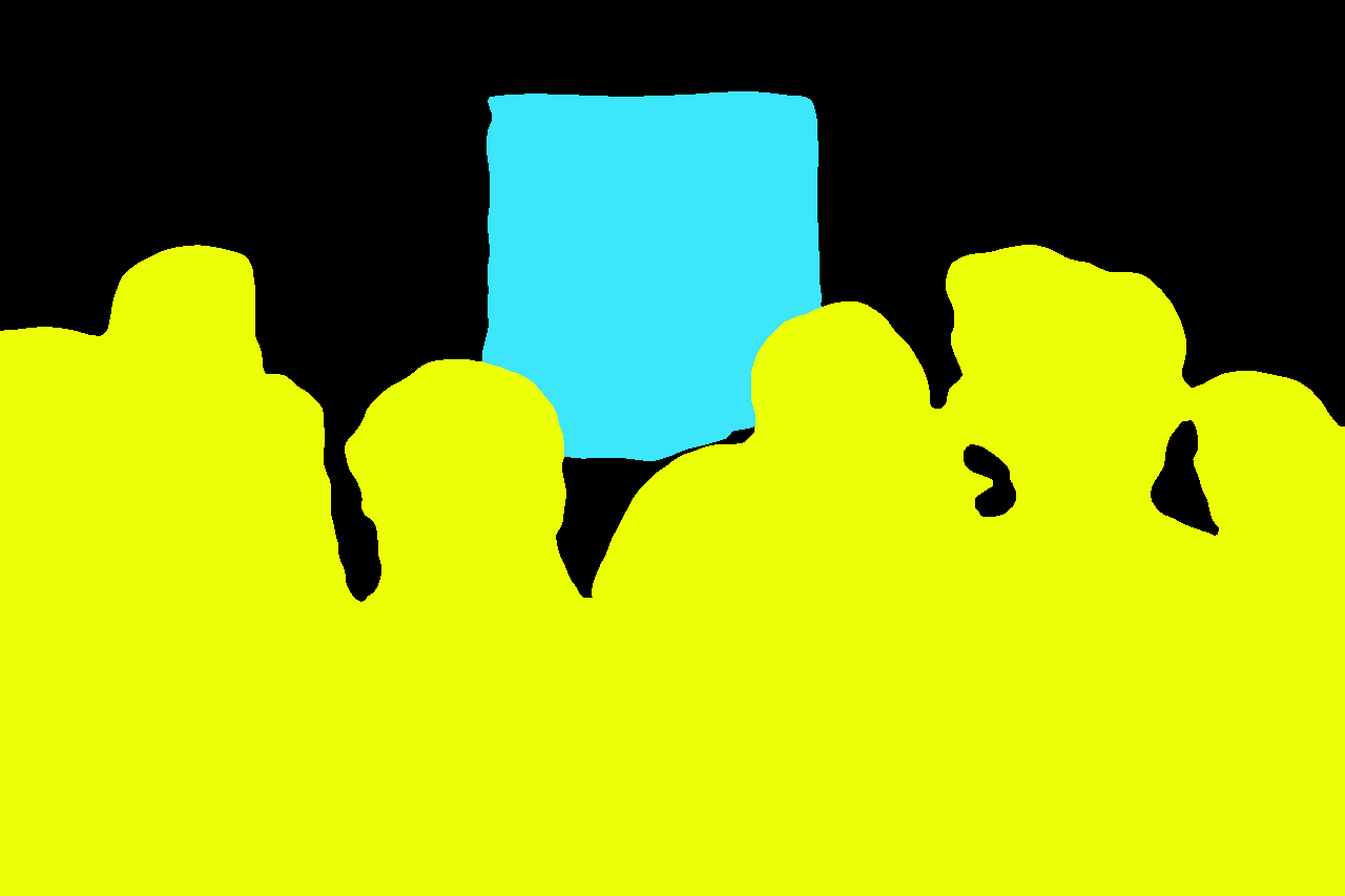 Notice how all the people were given the same yellow color. This is because it’s semantic segmentation (some other kinds of segmentation also give different colors to different instances of the same class). Now let’s convert this into a new AI-generated image: