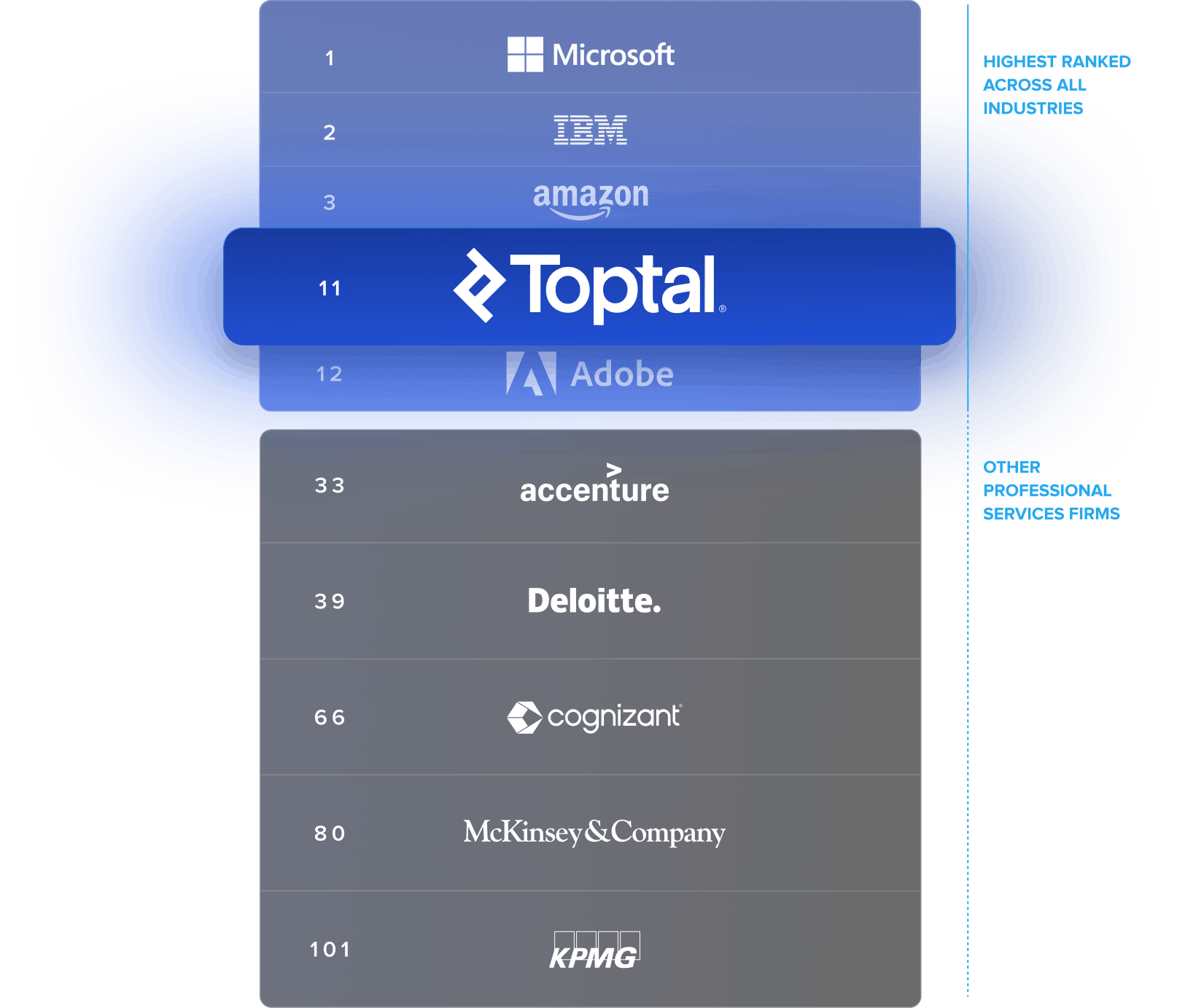 Toptal Ranked #1 Most Reliable Professional Services Company in America