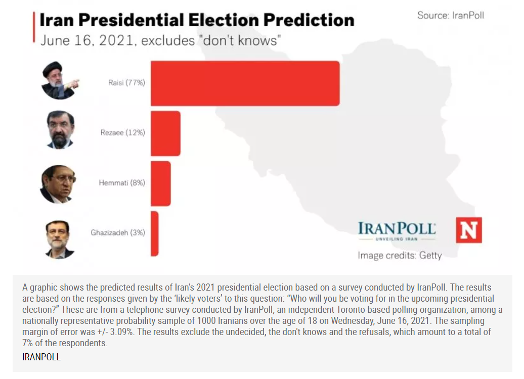 Iran’s thirteenth presidential election was held on 2021-06-18. Newsweek covered our predictions in a feature exclusive article published on 2021-06-17, one day before the election.
