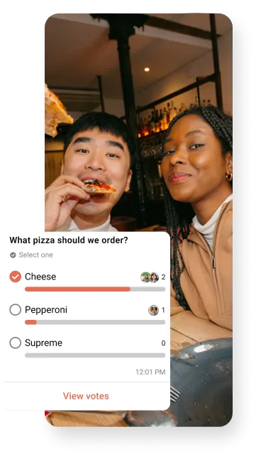 When the chat can’t agree on something, create a poll instead. And if you can’t find the words, GIFs, stickers, voice notes, and more can do all the talking.