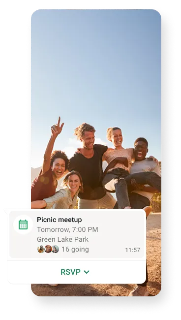 Get the plan out of the group chat with detailed event messages that include date, time and location, and keep track of who is coming.