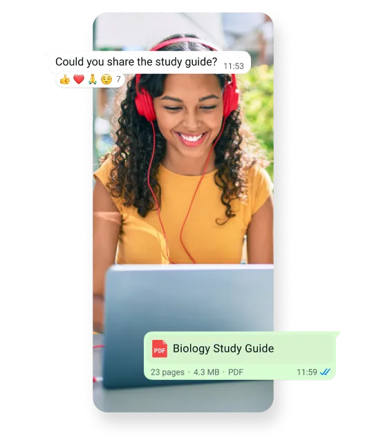 Large study guide? No problem. Send up to 2GB files to your classmates right from your group chat on WhatsApp.