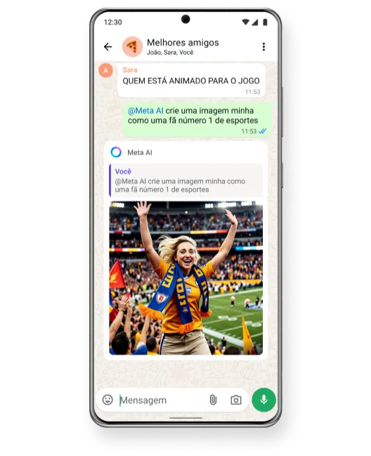 Seja para combinar o próximo encontro com seus amigos ou para criar e compartilhar imagens nos grupos, com a Meta AI é fácil receber ajuda para qualquer coisa. Tudo isso com a segurança e a privacidade do WhatsApp.